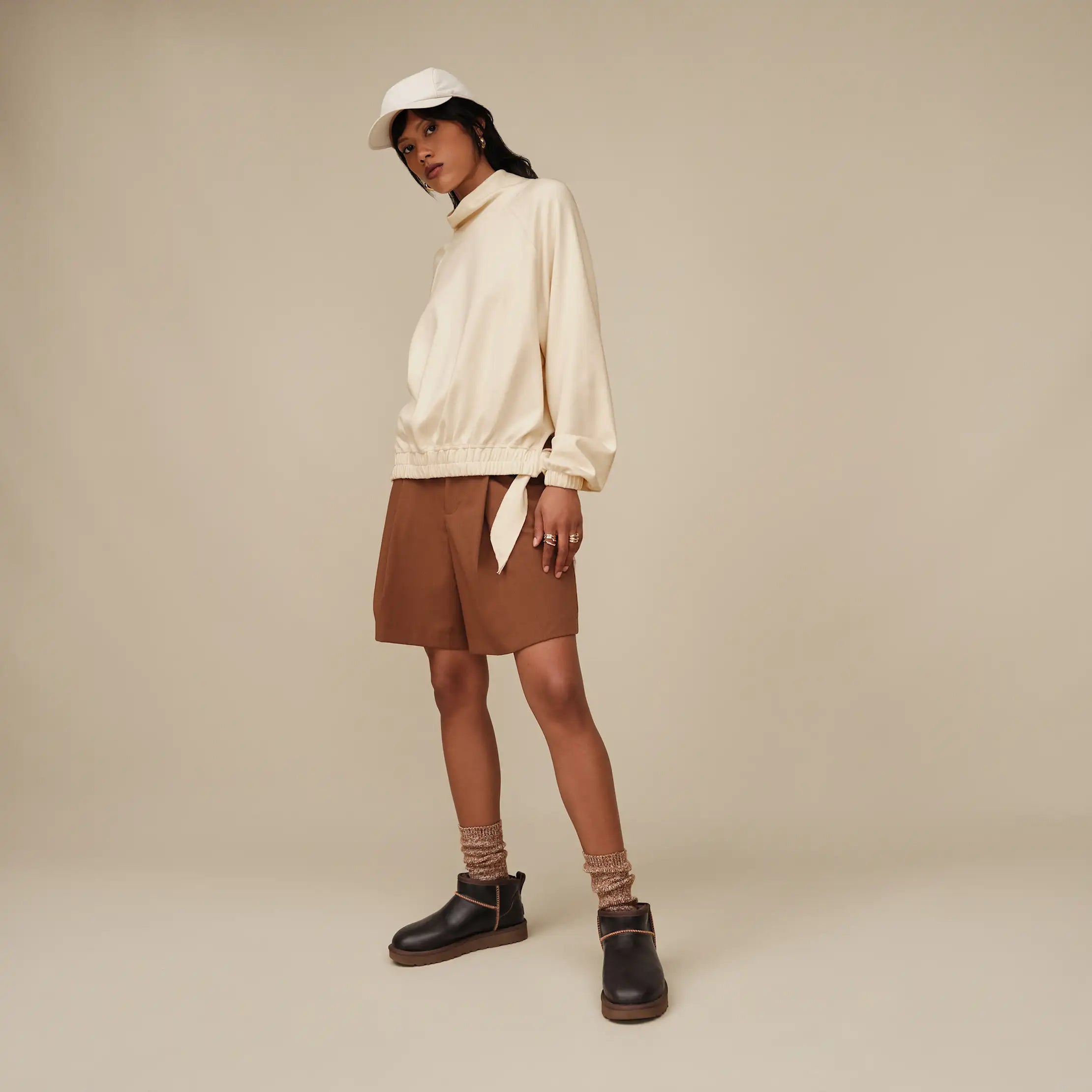 This cream UGG pullover is the definition of chic comfort. With its soft quilted texture, relaxed high neckline, and playful tie-hem details, it’s the perfect blend of cozy and stylish. Dress it up with tailored pants for a polished vibe or keep it casual with leggings and sneakers—either way, you’ll be serving effortless cool all season long.