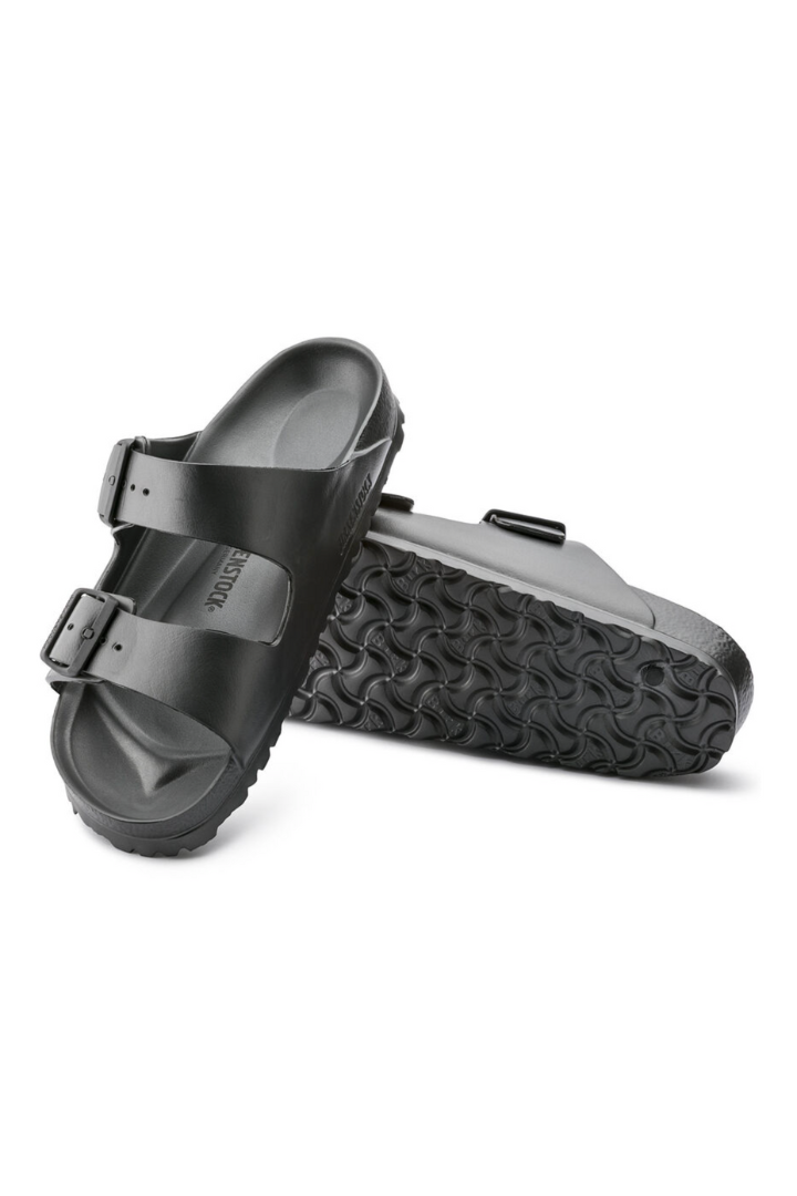 The legendary two-strap design from BIRKENSTOCK - the Arizona. Modeled on the cork original, this sandal is made from ultra lightweight and highly flexible EVA. These sandals are shock absorbing, waterproof, and skin-friendly. Wear them at the beach, in the garden, or around the gym and after workouts. It's the perfect addition to your classic BIRKENSTOCK sandals.