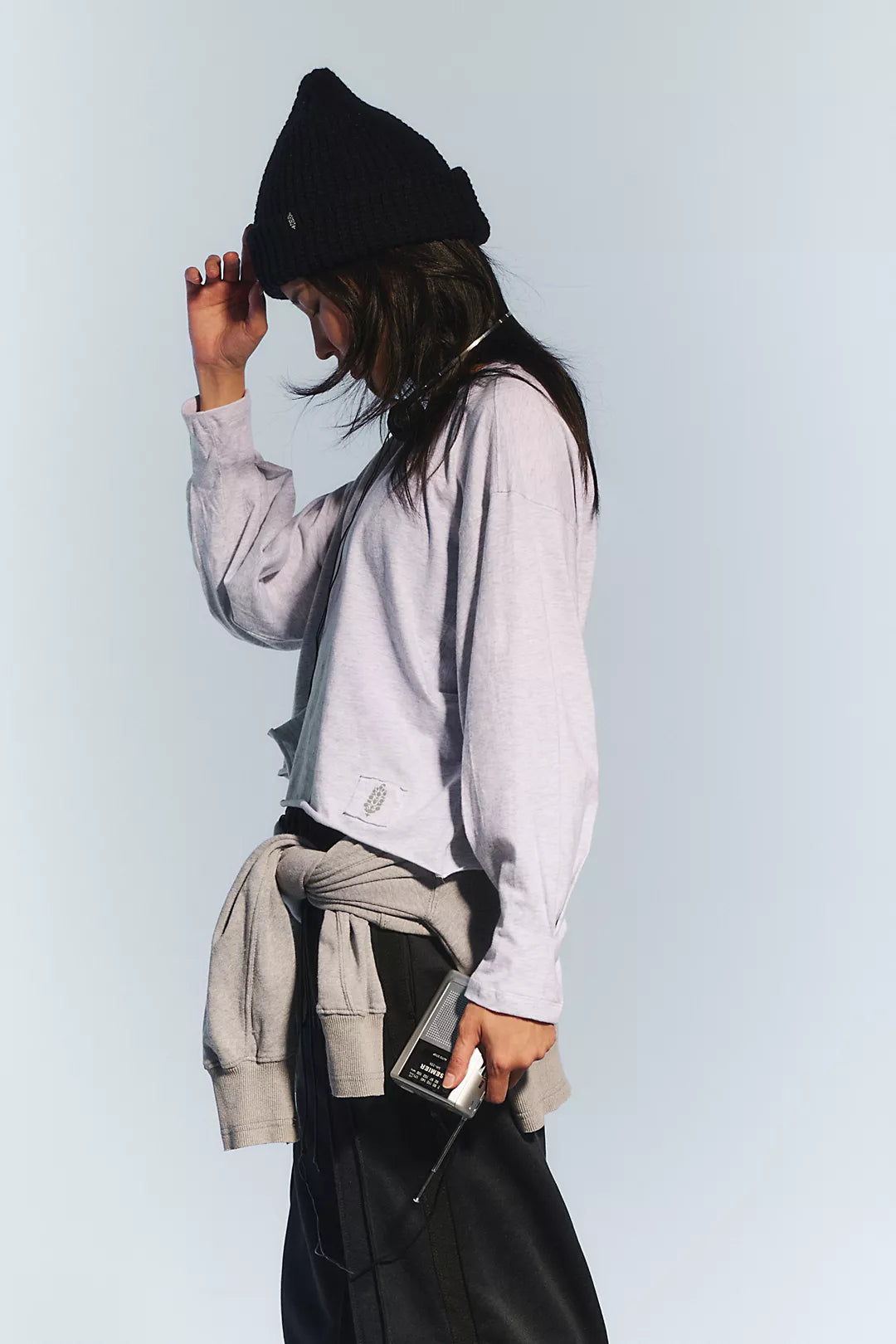 Warm up or cool down in this essential long-sleeve, featured in a boxy silhouette and slightly cropped fit with a classic crew neckline and raw-edge trim.